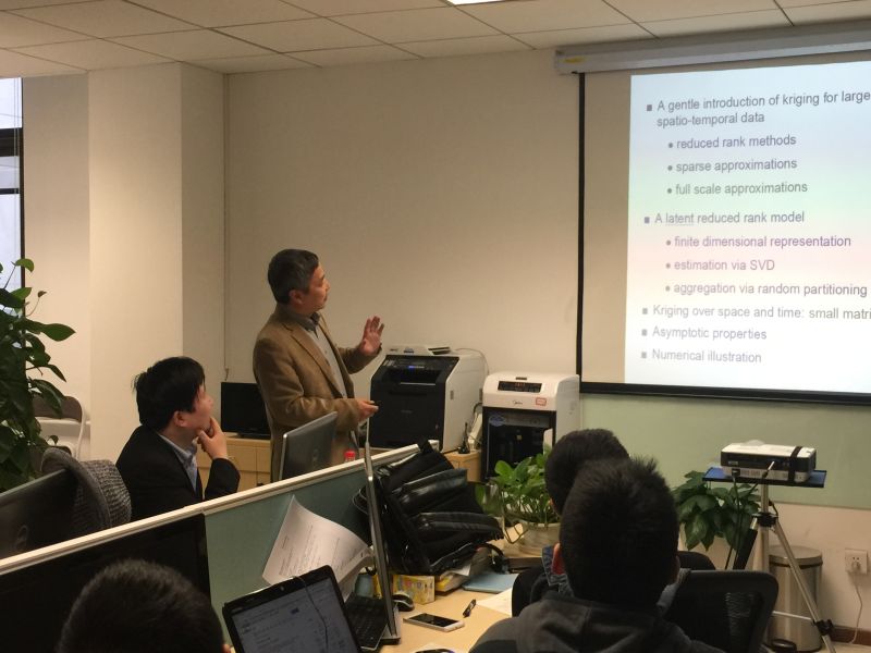 2016年4月7日,伦敦政治经济学院统计系教授姚琦伟访问我中心,并做学术报告“Kriging Over Space and Time Based on a Latent Reduced Rank Structure”。