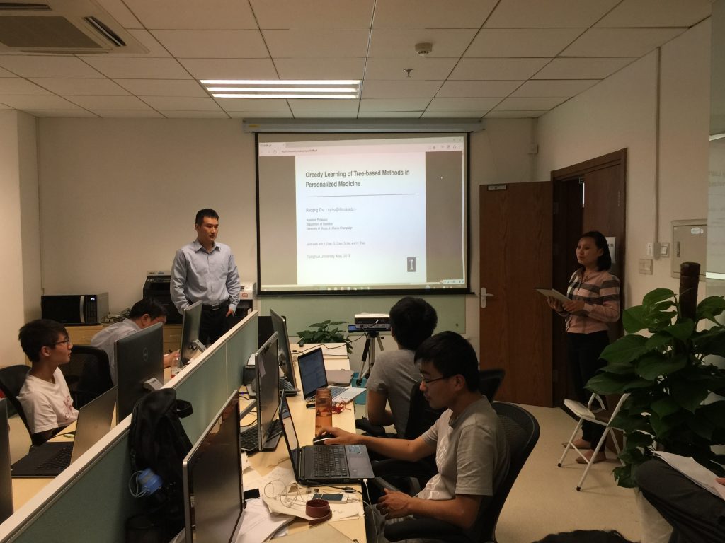 2016年5月25日,伊利诺伊大学厄巴纳香槟分校统计系助理教授朱若青访问我中心,并做学术报告Tree-based methods and their applications in personalized medicine.